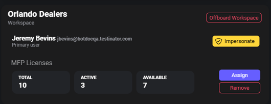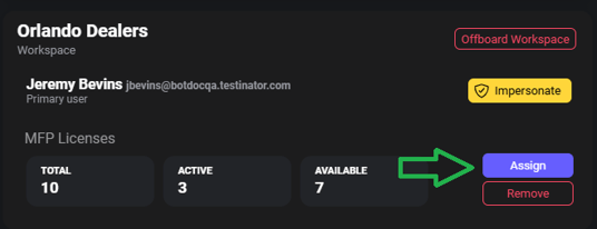 Partners can assign MFP licenses from their available license pool to a specific Workspace. This allows the Workspace to use the licensed Secure MFP functionality.