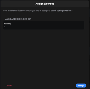 When the quantity is entered, click "Assign" to submit the license assignment.