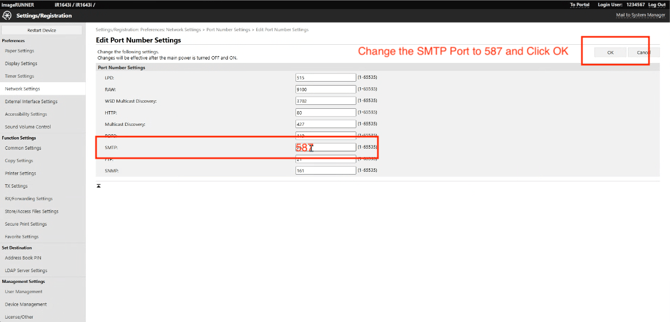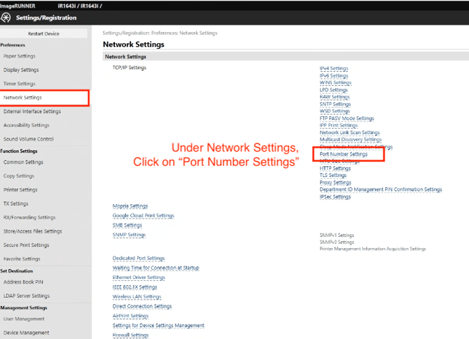 Go to Network Settings → Port Number Settings.