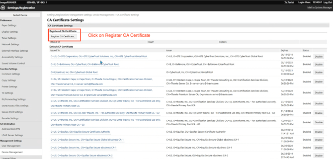 Click Device Management → CA Certificate Settings.