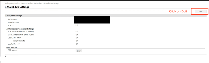 Click Edit to modify email transmission settings.