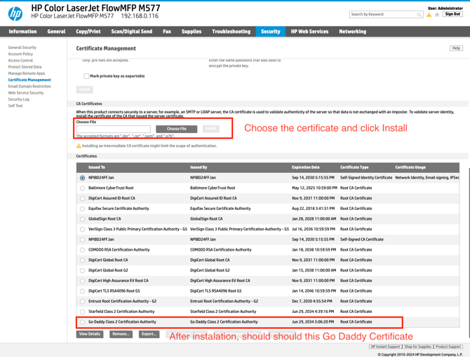 2️⃣ Upload the Certificate to the HP MFP