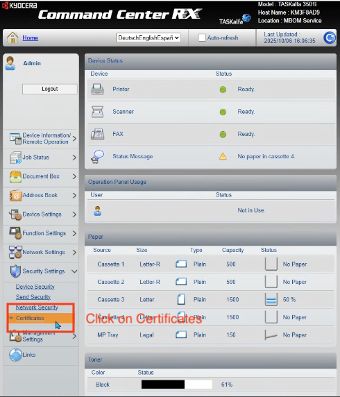 Access to the Kyocera Command Center RX (web interface)