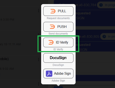 Once enabled, in P2/Conversations and an open Conversation, you will find a new feature shown in your list after selecting the ( + ) button to add a feature to the Conversation. The feature is labeled as "ID Verify".