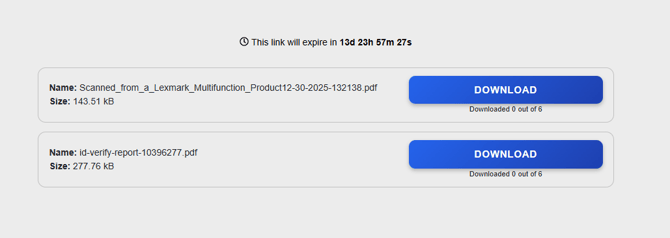 Once you open the URL in the email, there will be options to download the scanned images and the ID Verify report, as shown below: