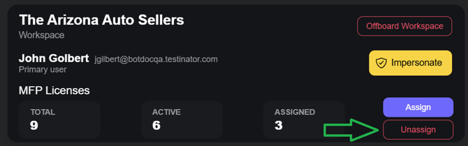 Partners can remove MFP licenses from a Workspace when those licenses are no longer needed.
