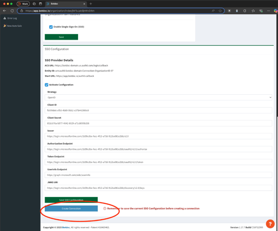 Name: Provide a descriptive name, for example, “BOTDOC-SSO”.