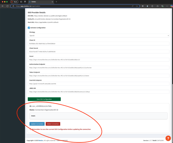 After filling in all the information, click on “Save SSO Configuration,” making sure the Activate Configuration is checked.