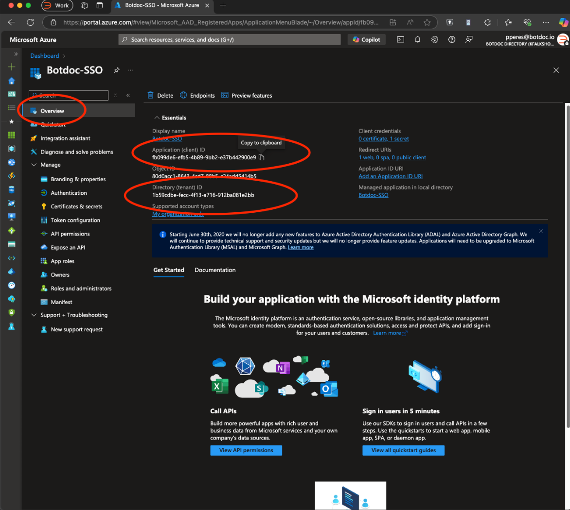 Supported account types: Accounts in this organizational directory only (BotDoc Directory only - Single tenant)